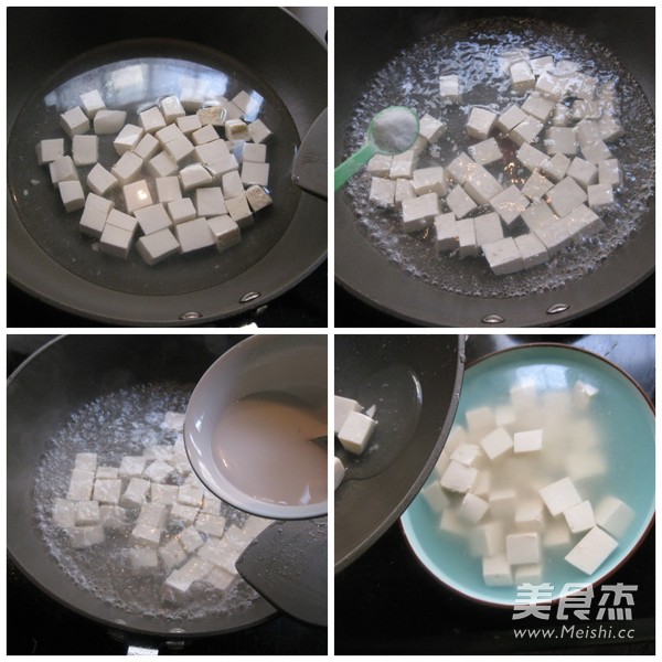 1、把豆腐先煮下,里面加入鹽,可以讓豆腐去掉豆腥味,且不易破損。而加入水淀粉里面可以讓豆腐和水糊住,一直保持滾燙的口感!